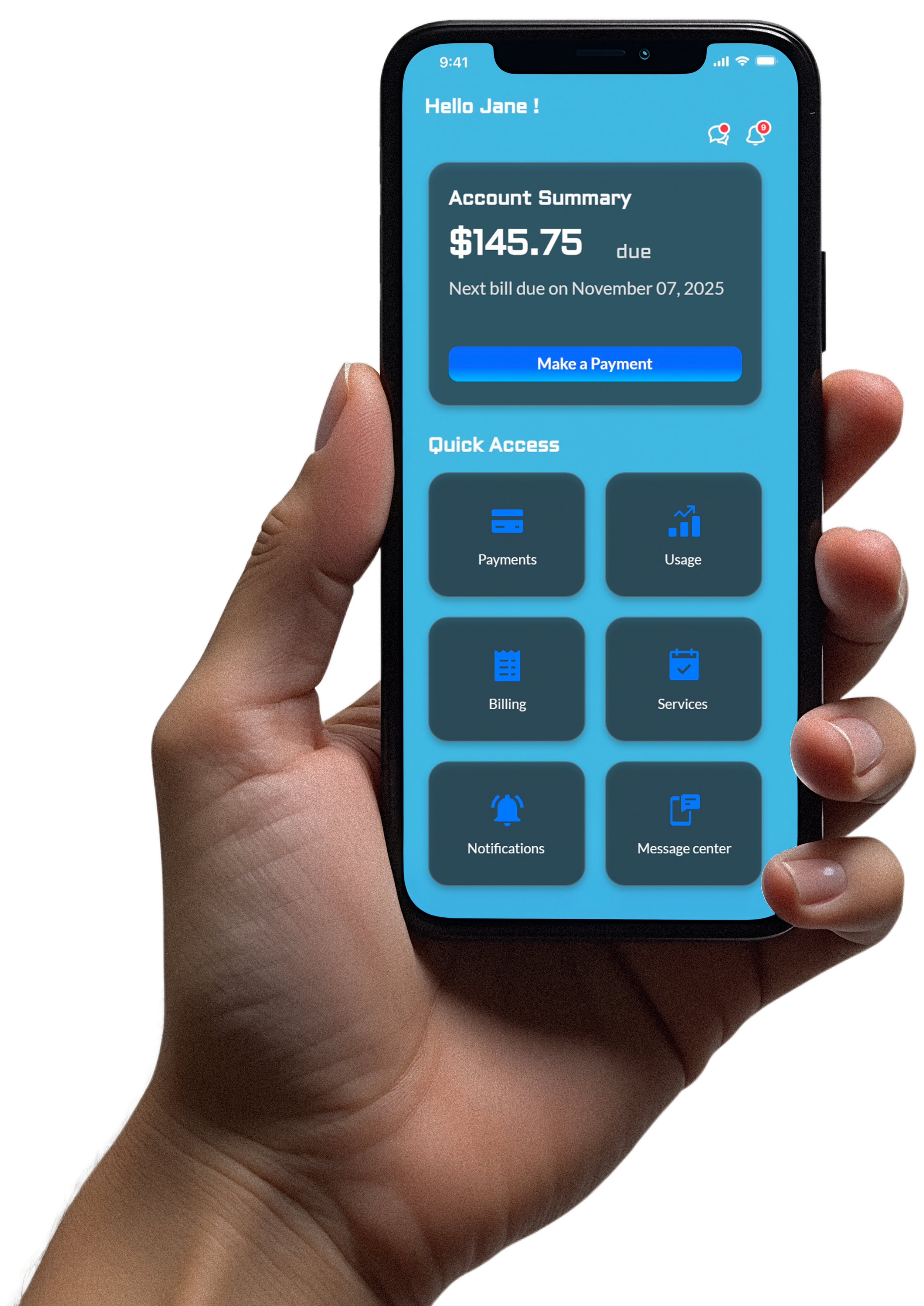 Receive outage alerts and payment reminders in real time.